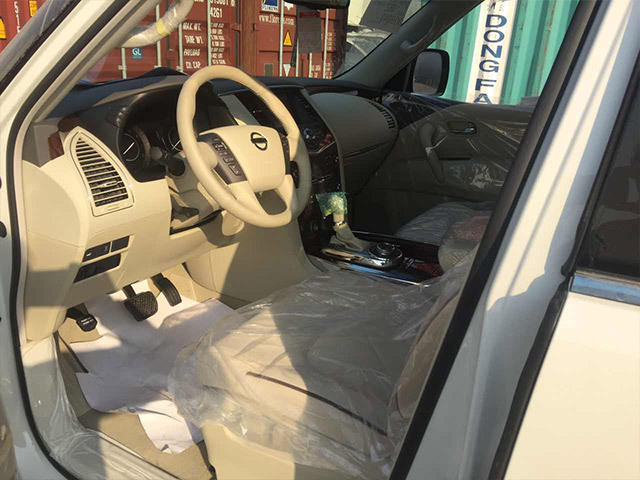 2017款日产尼桑途乐Y62越野4.0L中东版采用了豪华轿车惯用的四幅风向盘设计,粗细比较合手再加上真皮加实木的用料,手握感觉极佳。